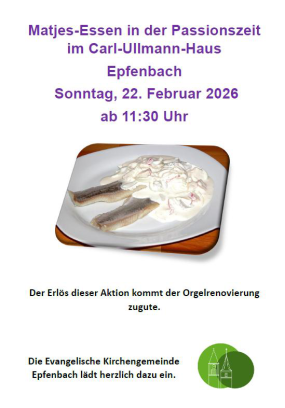 Gleich im Anschluss an den Gottedienst findet das Matjes-Essen zugunsten der Orgelrenovierung statt. Herzliche Einladung hierzu.