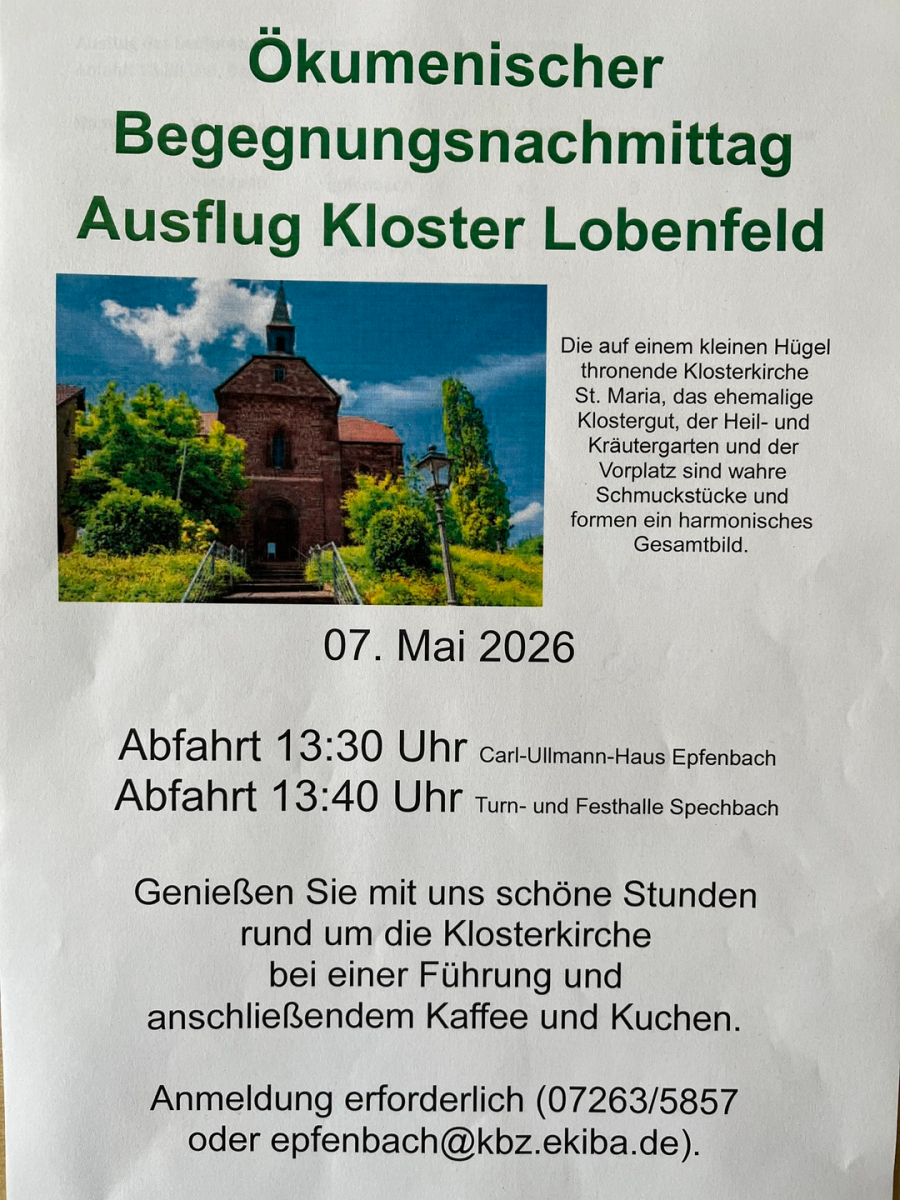 9.15 Uhr gemeinsamer Gottesdienst in Epfenbach, im Anschluss Einladung zum Kirchenkaffee.